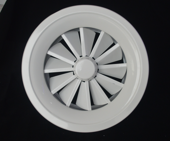 (7)旋流風口發出旋轉射流,具有誘導比大、風速衰減快的特點。它可用作空調通風系統中的高值、低速。大溫差送風可以減少風口數量。它可以安裝在天花板或天花板上,并可用于3米以內的低空間。也可用于兩種高度的大面積送風,高度甚至可達10米以上。