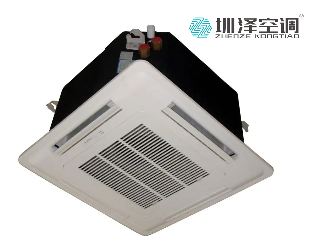 卡式風機盤管空調系統的工作原理是利用卡式風機盤管連續循環室內空氣,使其通過盤管制冷或加熱,以維持房間所需的溫度和相對濕度。